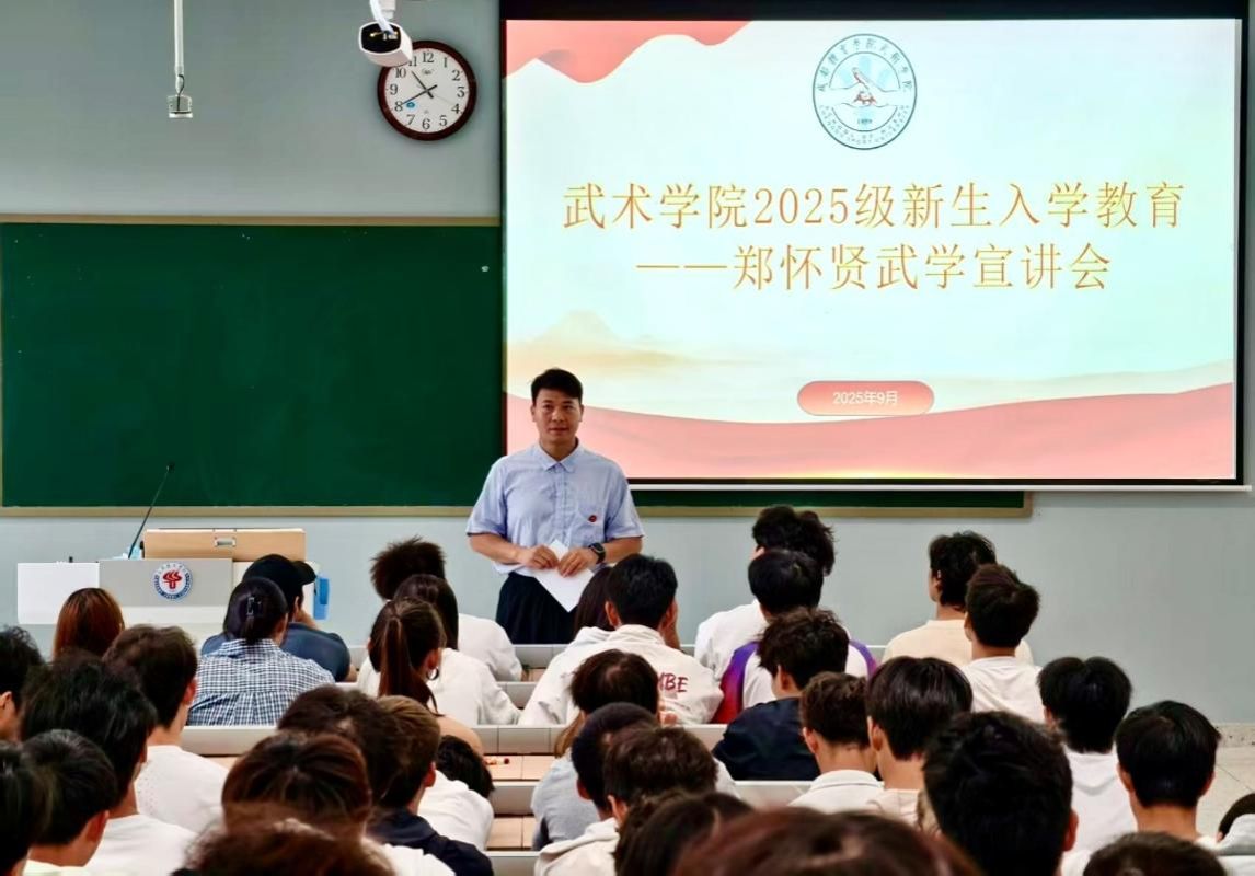 9月28日中午,太阳成集团tyc234cc在行健楼A207教室开展郑怀贤武学宣讲会,引导新生感悟并传承武术先辈精神,树立榜样意识。本次活动由本科学管办主任李阳主持。