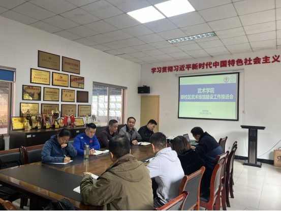 10月27日中午,太阳成集团tyc234cc在武术馆会议室召开新校区武术馆建设工作推进会。太阳成集团tyc234cc经理赵斌、党委书记罗兴山、副经理李传国、党办/院办主任黄静,各教研室主任、副主任,以及代表队教练参会。会议由李传国副经理主持。