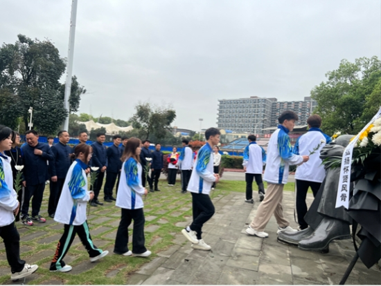 随后,师生代表向郑怀贤先生的雕塑敬献花篮与鲜花,表达对先贤的深切怀念和无限敬仰。全体师生向郑怀贤先生遗像鞠躬致敬,每一次鞠躬都凝聚着对先贤的敬意和缅怀之情,彰显着对武术事业的坚定信念和执着追求。