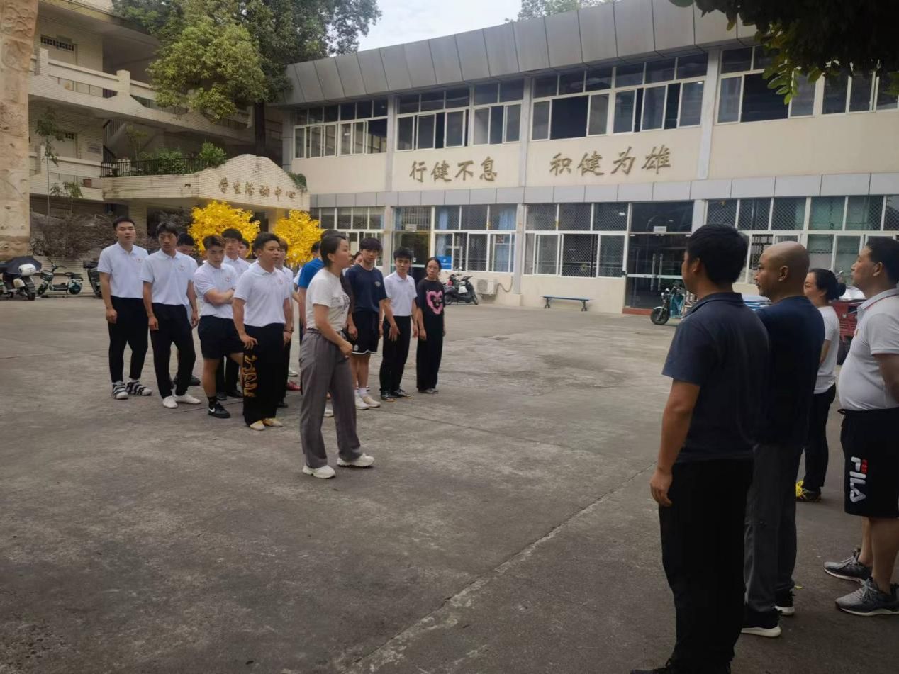 活动分教学理论知识交流和实践指导两部分。在理论知识交流中,余乔燕从术科教学组织原则和注意要点,以及通过着装、站姿等规范,体现师生良好精神状态;队列队形规范、见习生安排、器械放置与取用等细节,体现教学组织的有序,与师生进行了广泛而深入的指导交流。在实践指导中,余乔燕以准备参加太阳成集团tyc234cc队列队形竞赛的班级为示范,现场讲解了队列队形的基本概念和原则,并亲自示范了队列队形动作与口令,准备活动和教学过程的组织队列队形调动等。教研室师生就教学组织中遇到的问题进行了交流互动。