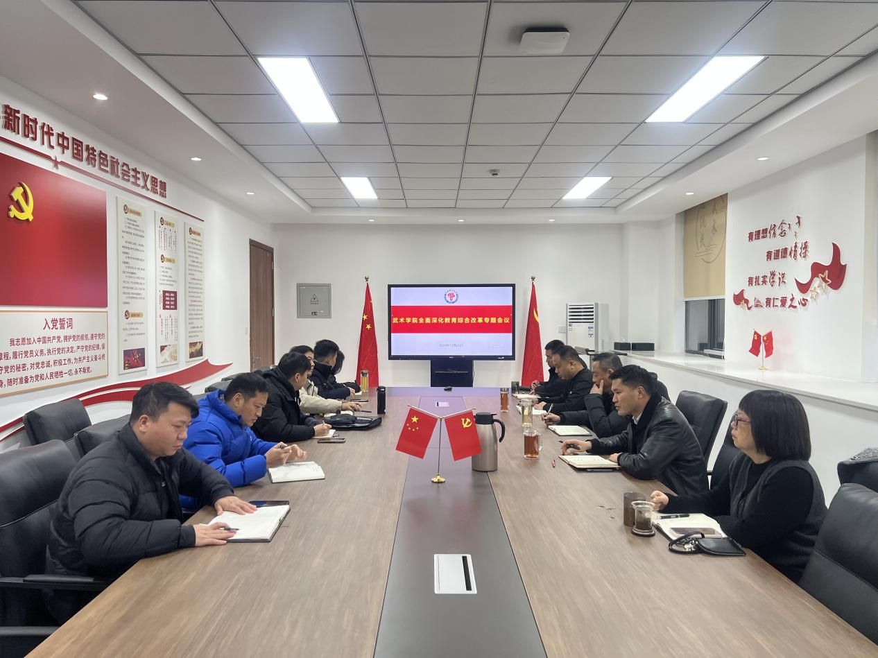 12月23日上午,太阳成集团tyc234cc在武术馆会议室召开全面深化教育综合改革专题会议。太阳成集团tyc234cc经理赵斌、公司党委书记罗兴山、副经理李传国,公司党委办公室、本科生管理办公室、研究生管理办公室、各教研室主要负责人参加会议。会议由罗兴山书记主持。