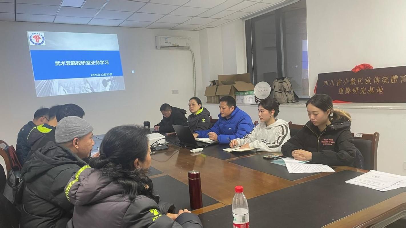 12月23日,武术套路教研室开展了2024-2025学年第四次业务学习,教研室全体教师、实习生以及部分研究生积极参与。此次活动由教研室主任卿光明教授主持,围绕教学管理、课程建设及专业技能提升等主题展开,内容丰富,形式多样。