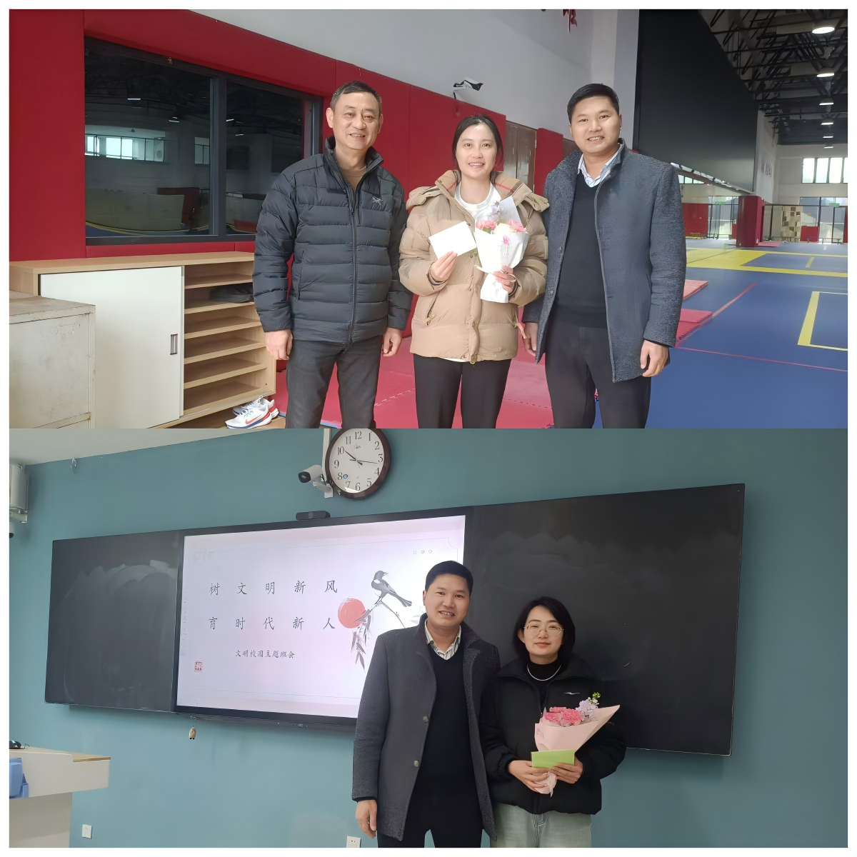 公司领导班子走进训练场馆、课堂、教研室及办公室等教学一线、工作一线,为奋战在公司产品岗位上的女教师送上手捧花和祝福卡片。太阳成集团tyc234cc经理赵斌表示,公司始终重视对教职工的人文关怀,注重发挥女性教职工“半边天”作用,发挥全员育人与现代教育理念深度融合。收到祝福的老师们也感慨道:“卡片上的每一笔勾勒都让我们感受到公司对女教师的关爱,这份真情比礼物本身更加珍贵。”在春日暖阳中,手持花束的巾帼教师们,成为校园里一道亮丽的风景。