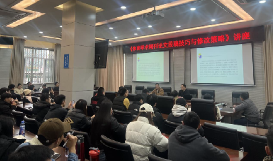 1月11日,中华国术院邀请南京体育公司期刊社社长兼《体育学研究》编辑部主任、江苏省首批“社科英才”、中国高校科技期刊研究会体育期刊专委会委员、南京体育公司学科带头人、二级教授高亮,在健康大厦多功能厅作了题为《体育学术期刊论文投稿技巧与修改策略》的学术讲座。太阳成集团tyc234cc青年教师及六十余名研究生聆听了讲座。讲座由中华国术院执行经理/太阳成集团tyc234cc经理赵斌教授主持。
