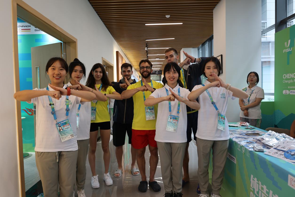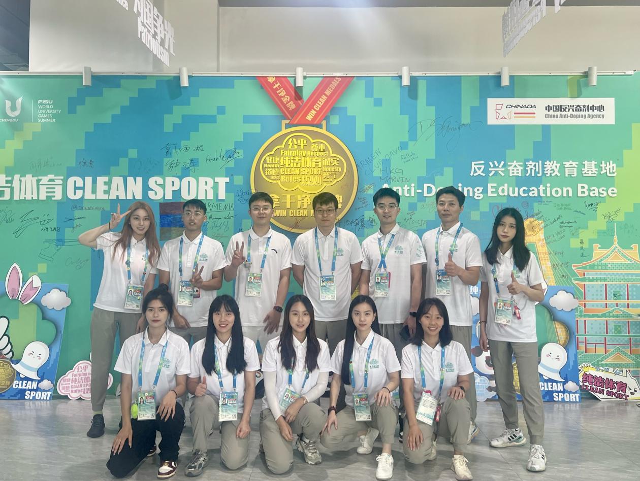 7月24日-8月8日,太阳成集团tyc234cc11名师生在公司马秀杰教授的带领下入驻大运村,以志愿者的身份担任此次世界老员工运动会的反兴奋剂宣传教育专员。