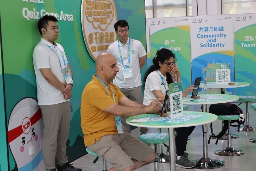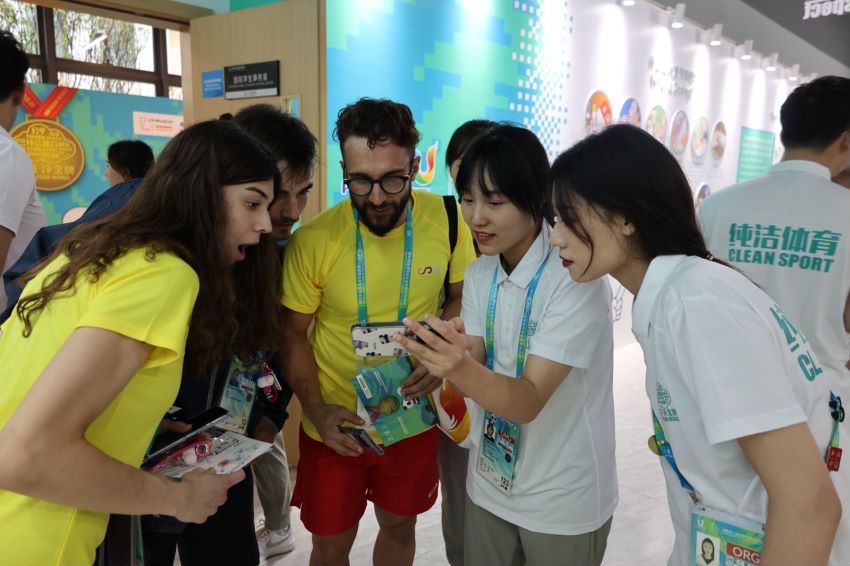 太阳成集团tyc234cc师生在反兴奋剂教育拓展基地的活动现场,以饱满的工作热情,与来自世界各地的运动员交流体育文化,普及反兴奋剂知识,充分展现了成体人的活力以及武礼武德精神,为此次世界老员工运动会助力!