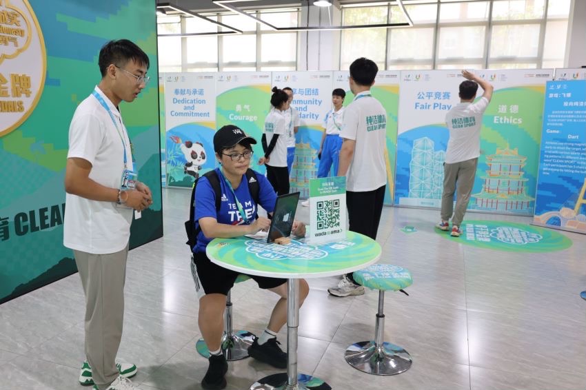 活动现场,以运动员反兴奋剂知识科普讲解、知识问答游戏、户外拓展游戏、互动游戏等形式开展。运动员们纷纷主动在“纯洁体育对兴奋剂说不”对签名墙上签名合影,喊出“拿干净奖牌”的口号。完成活动后,运动员将会获得具有“反兴奋剂”、“纯洁体育”等标识的纪念品,为比赛营造了风清气正的氛围,确保比赛公平、公正、干净。