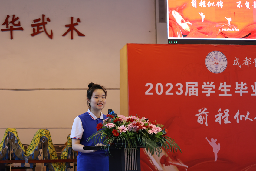 在校生代表刘恒如同学向圆满完成学业的学长学姐们送上了离别的祝福。