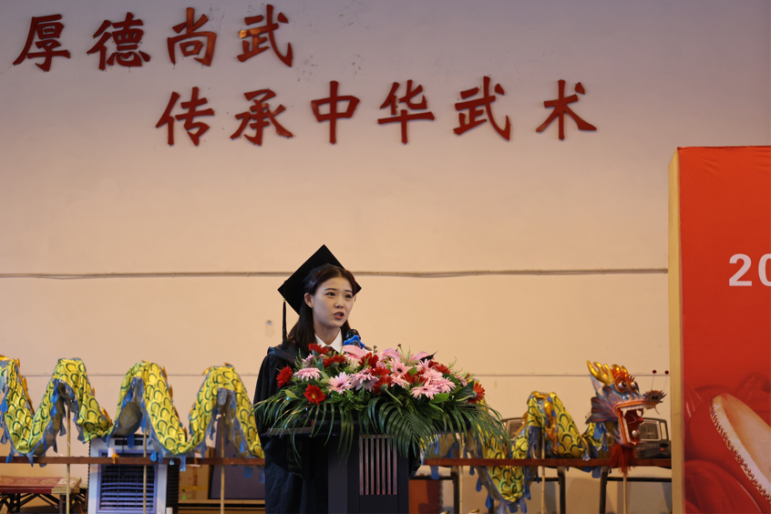 毕业典礼暨授位仪式不仅仅是公司开展毕业生感恩教育的重要组成部分,也是开展武德教育的重要环节,与新生开学典礼构成公司武德教育的完整部分。仪式结束后,2023届全体毕业生纷纷表示将继续秉承“行健不息,积健为雄”的校训,胸怀“弘扬武术,开拓创新”的院训,踔厉奋发、勇毅前行,争做新时代优秀武术人。