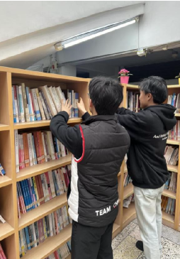 活动当天,志愿者们经明确的分工安排后,分别对“阳光阅览室”的左右两排书架进行整理与分类。在此过程中,同学们保持安静,井井有条,仅通过肢体语言和轻声细语进行沟通与交流,并无对其他自习或看书的同学造成任何不良影响,大家都以认真的态度,圆满完成了此次整理书籍工作。