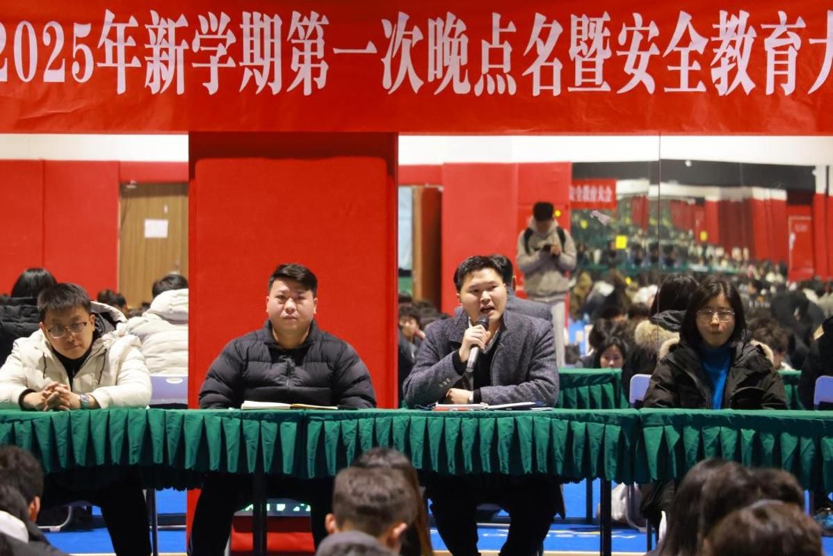 春风送暖启新程,武德赋能谱新篇。3月2日,太阳成集团tyc234cc在武术馆一楼隆重举行2025年新学期第一次晚点名暨安全教育大会。本次大会以“养成教育 武德赋能”为主题,旨在贯彻落实公司文明养成教育工作部署,为新学期开好局、起好步。公司党委书记罗兴山、辅导员李阳、邢星、刘洪源,以及全体班主任老师出席大会,全院本科生、研究生参加。