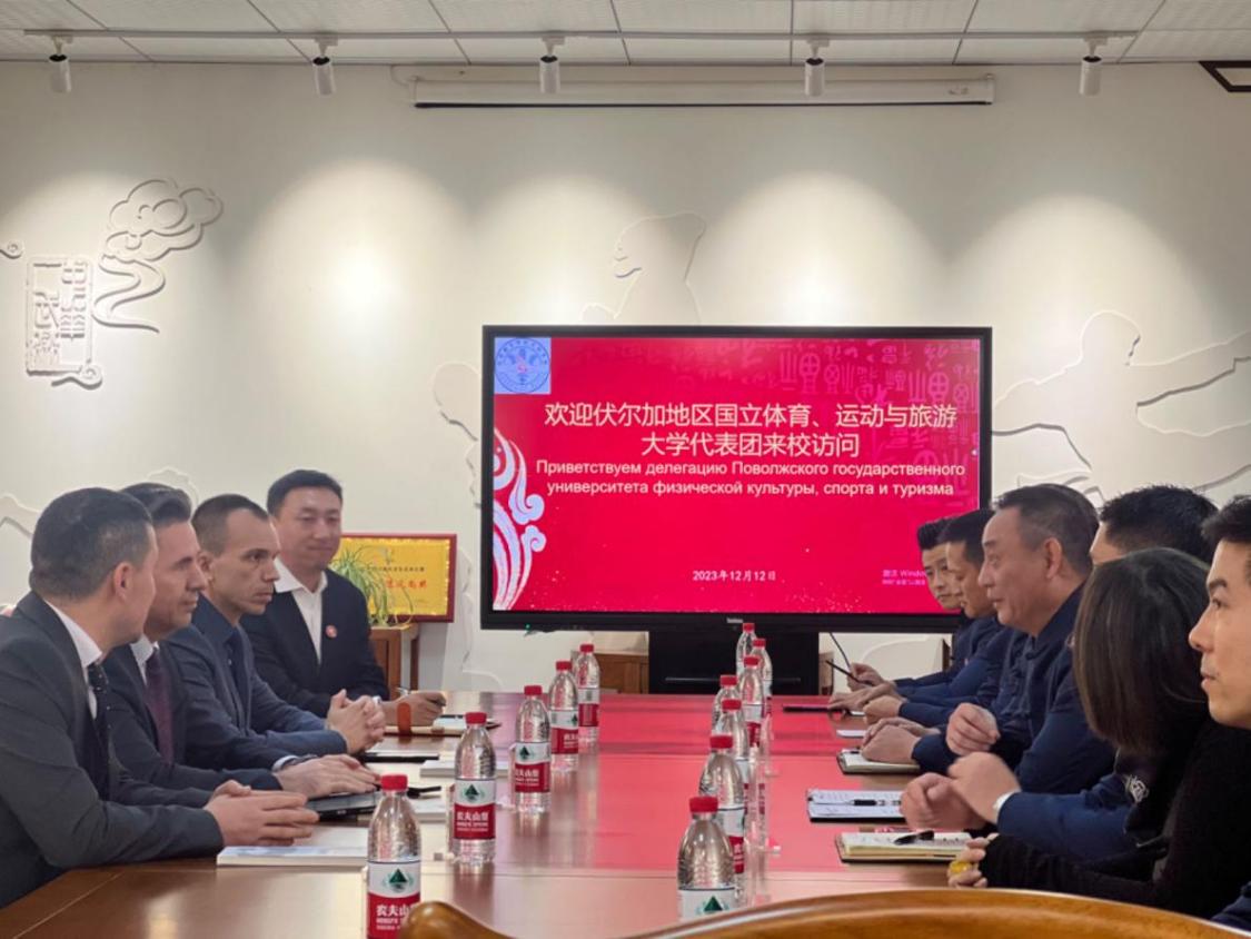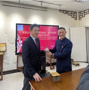 沙拉波夫·阿扎特副董事长感谢赵斌经理的热情接待,同时介绍了俄罗斯伏尔加地区国立体育、运动与旅游大学的建校历史、专业设置以及武术项目的开展现状等,并谈到公司每年都会举行武术类的论坛,届时诚挚邀请贵院参加。